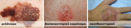 Οι δύο συνηθέστεροι καρκίνοι του δέρματος είναι το βασικοκυτταρικό καρκίνωμα και το ακανθοκυτταρικό. Αυτοί μπορεί να αναπτυχθούν γρήγορα ή αργά, ανάλογα με τον τύπο και σπάνια μεταδίδονται σε άλλα μέλη του σώματος. Ο πρώτος τύπος συνήθως εμφανίζεται σε μέρη του σώματος που είναι εκτεθειμένα στον ήλιο, όπως το πρόσωπο, ο λαιμός και τα χέρια, ενώ ο δεύτερος τύπος εμφανίζεται και σε σημεία όπως τα πόδια και τα πέλματα.