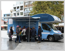 Από τις 14/10/2011, Παρασκευή απόγευμα, η Κινητή Μονάδα Ενημέρωσης για την Πρόληψη του Καρκίνου βρισκόταν στην κεντρική πλατεία της Κομοτηνής. Ο κόσμος ήταν πολύς, κυρίως νέοι άνθρωποι και φοιτητές. Οι νέοι έχουν τη φυσική περιέργεια να μάθουν τι συμβαίνει και δεν ντρέπονται να ρωτήσουν τι είναι η μονάδα αυτή και ποιον επιδιώκει να ενημερώσει. Αγόρια και κορίτσια ενημερώθηκαν για το πρόγραμμα και για το ΔΩΡΕΑΝ τεστ ΠΑΠ για τον καρκίνο του τραχήλου της μήτρας.