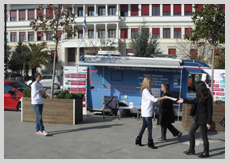 Η Κινητή Μονάδα Ενημέρωσης για τον καρκίνο του τραχήλου βρέθηκε στην κεντρική πλατεία του Ευόσμου. Το ενδιαφέρον των δημοτών ήταν μεγάλο και τα στελέχη της Μονάδας ενημέρωσαν μεγάλο αριθμό ανθρώπων δίνοντας έντυπα και παρέχοντας πληροφορίες για το πώς μια γυναίκα μπορεί να κλείσει ραντεβού για τεστ ΠΑΠ.