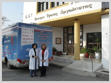 Η Κινητή Μονάδα Ενημέρωσης για το Εθνικό Σχέδιο Δράσης για τον καρκίνο, βρέθηκε στην κεντρική πλατεία της Αργαλαστής. Με την υποστήριξη των μαιών, κυριών Κατερίνας Καρασαΐνη και Ελένης Λάσκου, διανεμήθηκε έντυπο υλικό στους περαστικούς και απαντήθηκαν συγκεκριμένες ερωτήσεις σχετικά με το Πρόγραμμα και την αναγκαιότητα του τεστ ΠΑΠ. Επίσης, τα στελέχη της Μονάδας τοποθέτησαν οθόνη στην οποία και παρουσιάστηκε video επιστημονικού περιεχομένου για τον Προσυμπτωματικό Έλεγχο και την έγκαιρη διάγνωση του καρκίνου του τραχήλου της μήτρας.