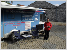 Η Κινητή Μονάδα Ενημέρωσης βρέθηκε στην κεντρική πλατεία της Αλιάρτου. Η μαία κυρία Άννα-Μαρίνα Αποστολοπούλου βοήθησε τα στελέχη της Μονάδας στη διανομή εντύπων και στην ενημέρωση της νεολαίας που βρισκόταν εκείνη την ώρα στις κοντινές καφετέριες.