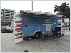 Σε μια από τις τελευταίες της στάσεις, η Κινητή Μονάδα Ενημέρωσης πέρασε από την κεντρική πλατεία της Γλυφάδας. Ο άσχημος καιρός δεν στάθηκε σύμμαχος αυτή τη φορά κι έτσι τα στελέχη της Μονάδας αναγκάστηκαν να παραμείνουν λιγότερες ώρες στην περιοχή. Παρόλα αυτά αρκετές γυναίκες ενημερώθηκαν για τον προσυμπτωματικό έλεγχο και ζήτησαν πληροφορίες για το πώς θα κλείσουν ραντεβού για να κάνουν το τεστ ΠΑΠ.