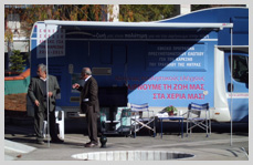 Στον πεζόδρομο «Ακταίον» βρέθηκε το διήμερο η Κινητή Μονάδα Ενημέρωσης για την Έγκαιρη Διάγνωση του καρκίνου. Με τη βοήθεια της γυναικολόγου, κυρίας Όλγας Μπίκου και της μαίας, κυρίας Ελένης Ελευθερίου, διανεμήθηκε έντυπο υλικό σε περίπου 400 άτομα.