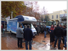 Σε μια από τις τελευταίες της στάσεις, η Κινητή Μονάδα Ενημέρωσης πέρασε από την κεντρική πλατεία της Γλυφάδας. Ο άσχημος καιρός δεν στάθηκε σύμμαχος αυτή τη φορά κι έτσι τα στελέχη της Μονάδας αναγκάστηκαν να παραμείνουν λιγότερες ώρες στην περιοχή. Παρόλα αυτά αρκετές γυναίκες ενημερώθηκαν για τον προσυμπτωματικό έλεγχο και ζήτησαν πληροφορίες για το πώς θα κλείσουν ραντεβού για να κάνουν το τεστ ΠΑΠ.